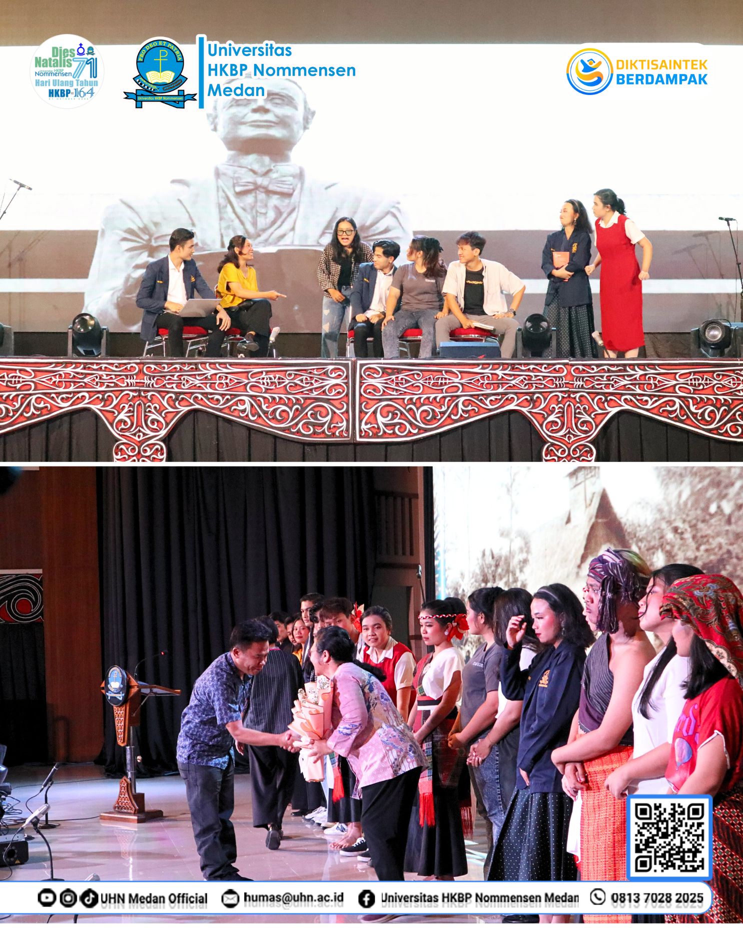 Dalam rangka memperingati Dies Natalis ke-71 Universitas HKBP Nommensen (UHN Medan) dan Ulang Tahun HKBP ke-164, UHN Medan menggelar pertunjukan Drama/Opera bertajuk “Berakar di Tanah Batak, Bertumbuh untuk Dunia” yang berlangsung di Auditorium Lantai 3 Universitas HKBP Nommensen Medan, pada Senin, 6 Oktober 2025 pukul 14.00 WIB.